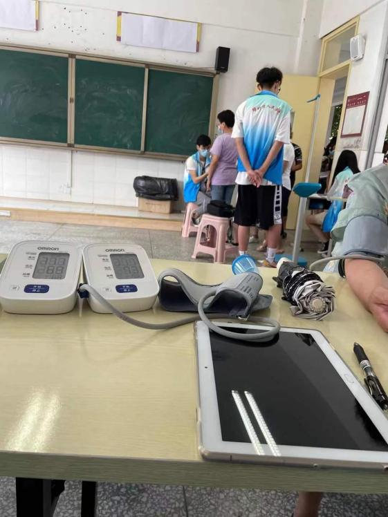 7月31日,英国正版365官方网站19级学生袁艺芯来到南轩中学帮助医生进行当地居民的日常体检工作。
